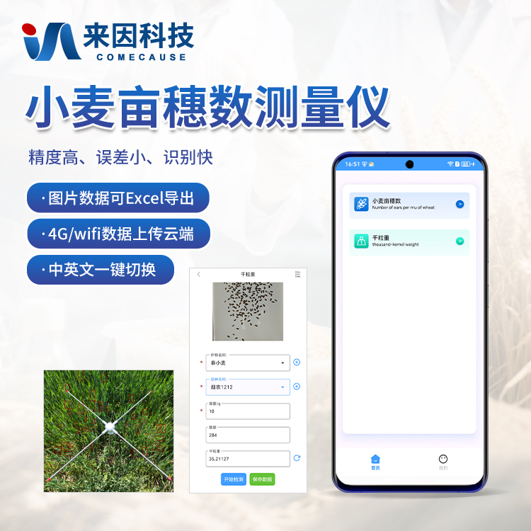 小麦亩穗数测量主要用于快速、准确地测量单位面积内的小麦穗数。该设备结合图像识别技术、人工智能算法与高分辨率摄像系统,通过对实地拍摄的小麦图像进行分析,自动识别并计数麦穗数量,极大地提高了测量效率与准确性。